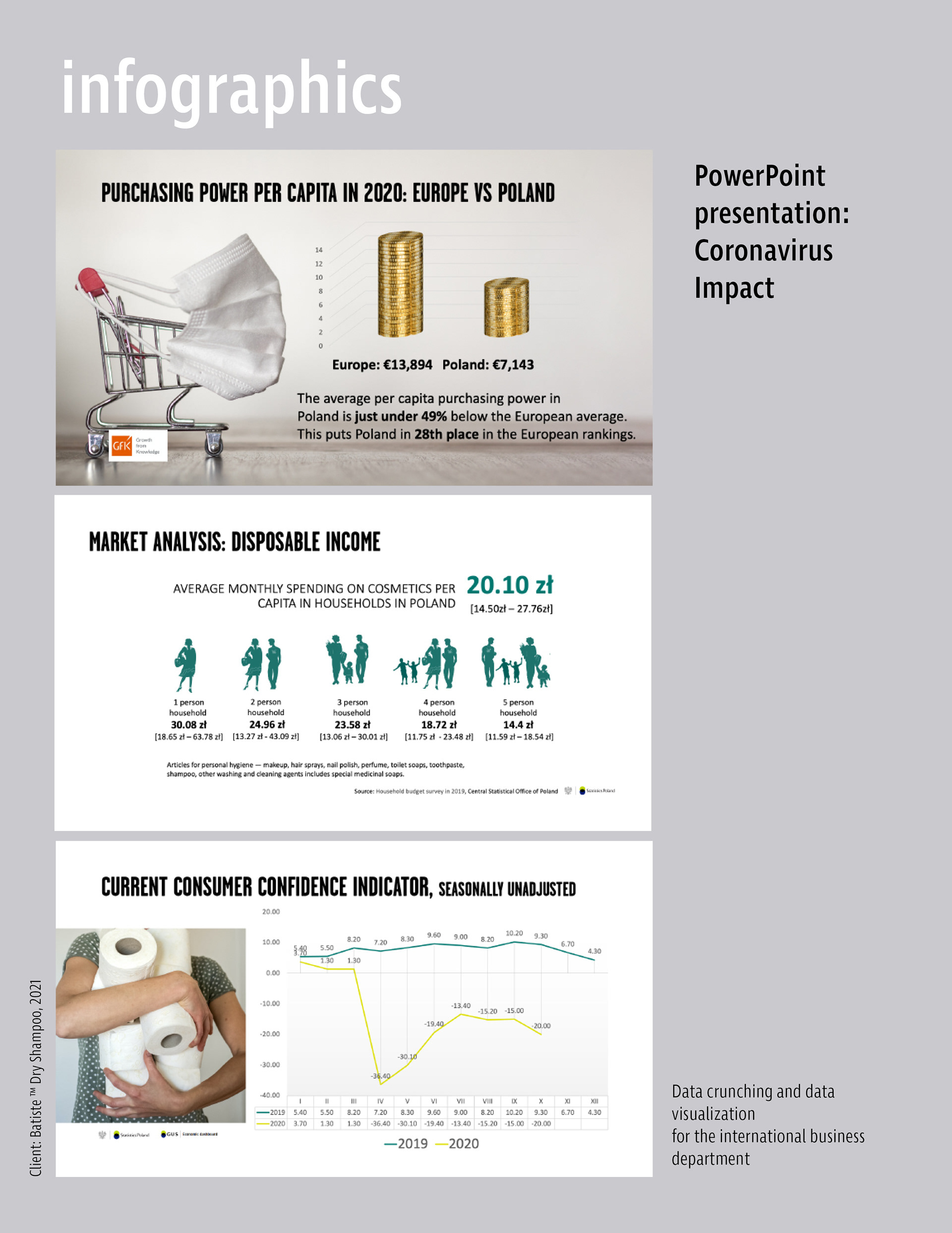 Infographics, charts, presentations